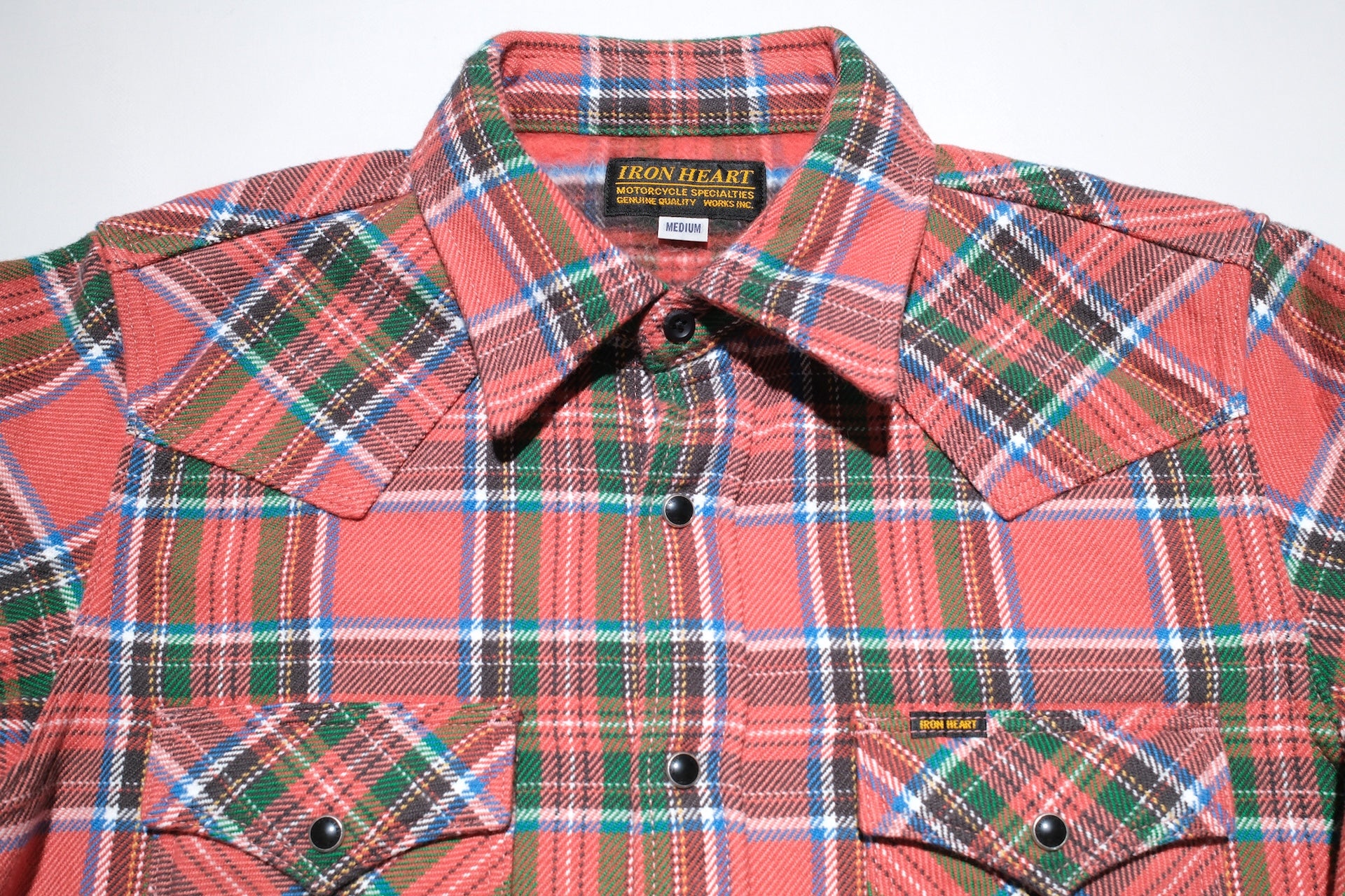 Iron Heart Ultra-Heavy Flannel Crazy Check Western Shirt (Watermelon Red)