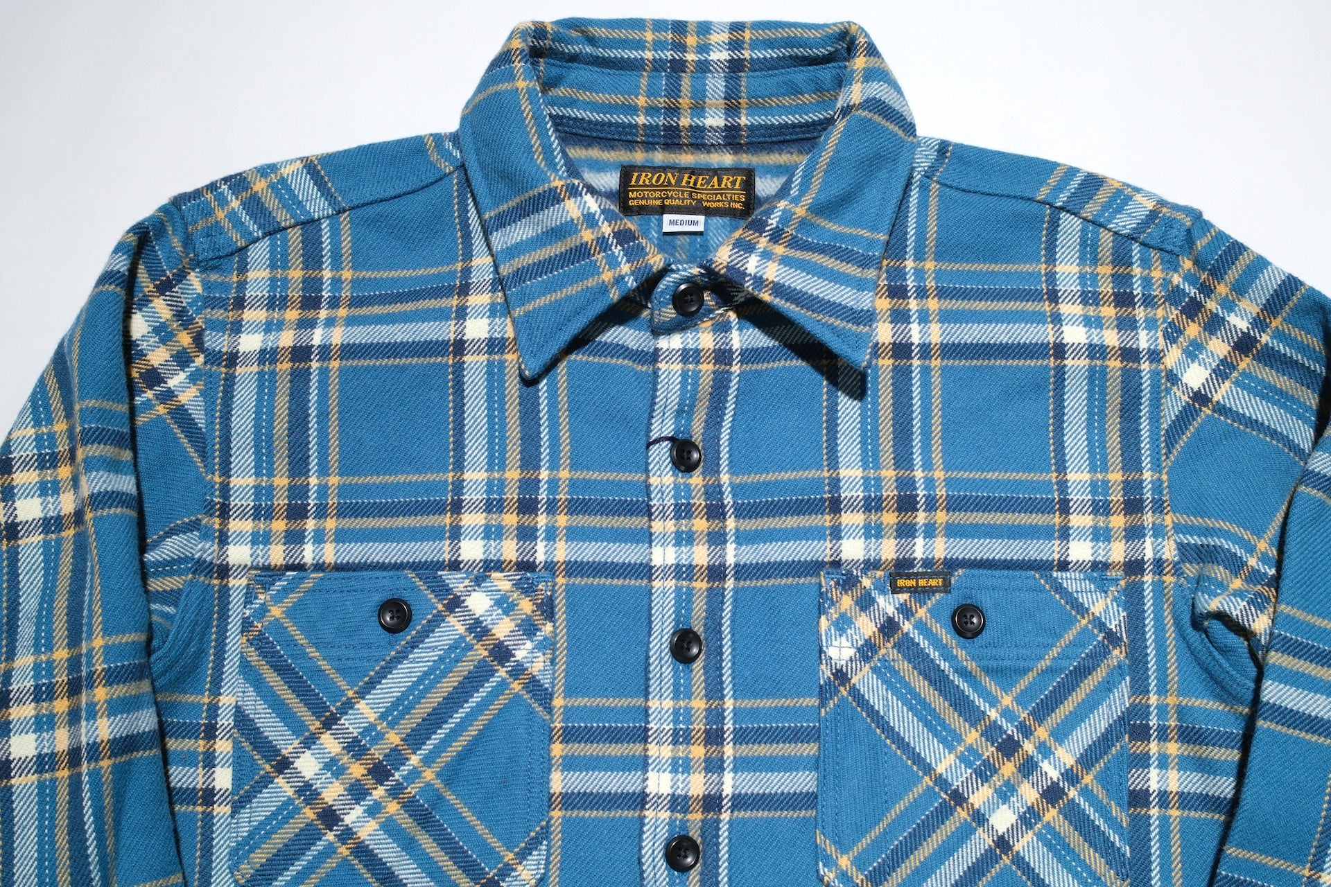 Iron Heart Ultra-Heavy Flannel Crazy Check Work Shirt (Cerulean Blue)