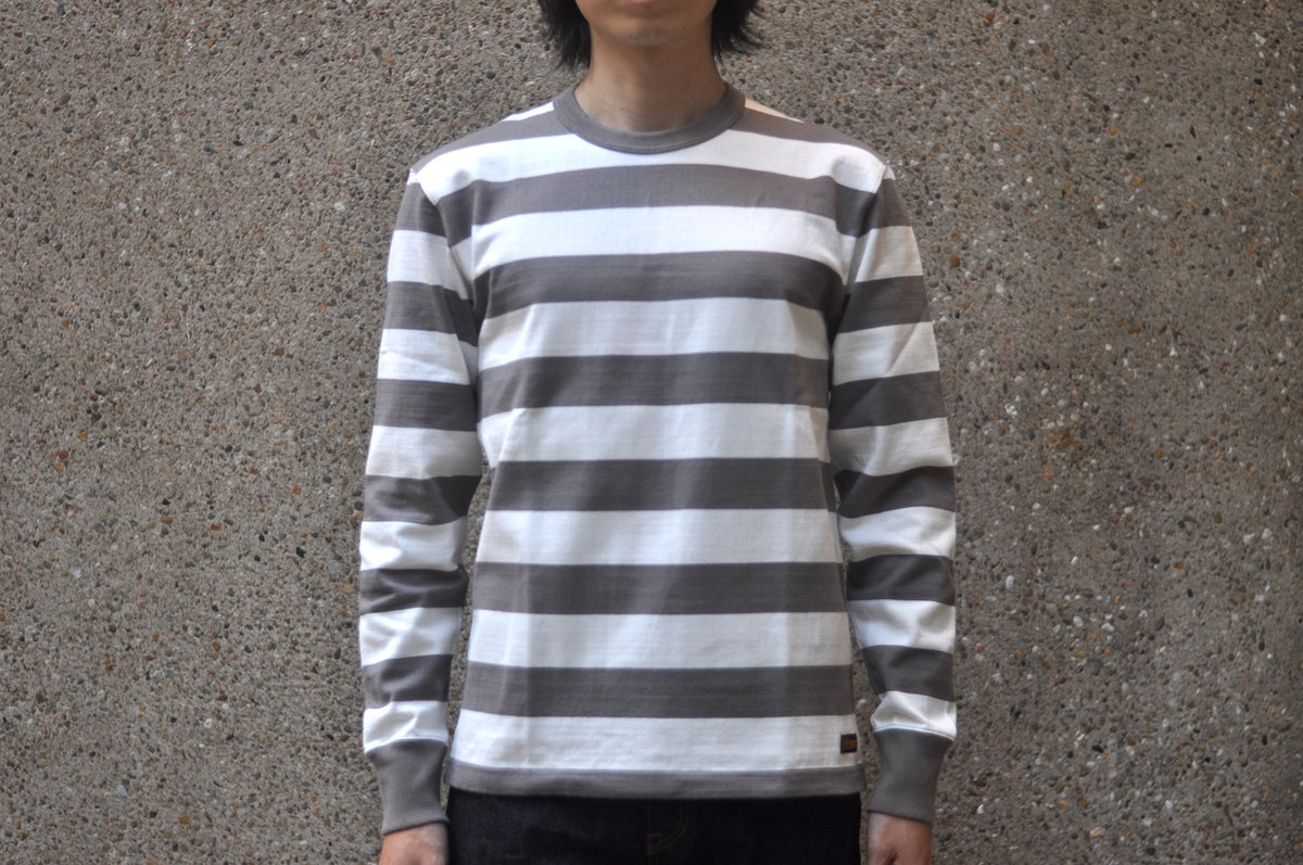 Iron Heart 11oz Cotton Knit Border L/S Sweater (Grey X White)