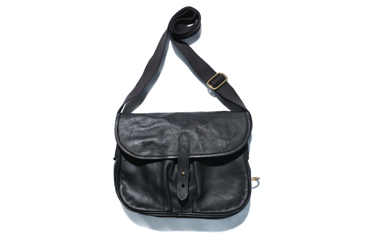 Ginkawaten Full-Grain Cowhide Utility Shoulder Bag (Solid Black)