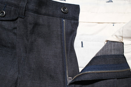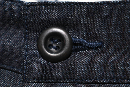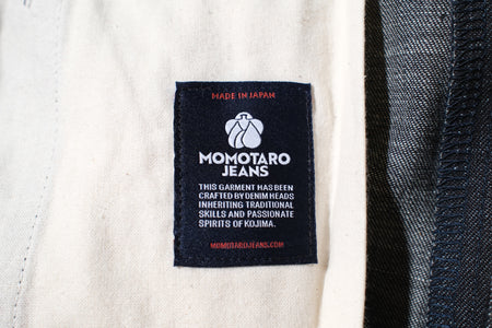 Tokuno Blue (特濃蓝) in Japanese means “Ultra-Dark Indigo.” To create this 8oz peach-colored selvedge denim, Momotaro used standard long-fibre Zimbabwe cotton for the warp (exterior) and extra-long-fibre, hand-picked Zimbabwe cotton for the weft (interior). The fabric is then slowly and tightly woven on vintage denim looms. This process gives the denim a smooth hand feel while revealing subtle, uneven textures beneath the surface. To achieve the remarkable depth of indigo known as Tokuno Blue, Momotaro dyed the yarn over 25 times—significantly more than most denim brands—resulting in an exceptionally rich and saturated indigo tone.