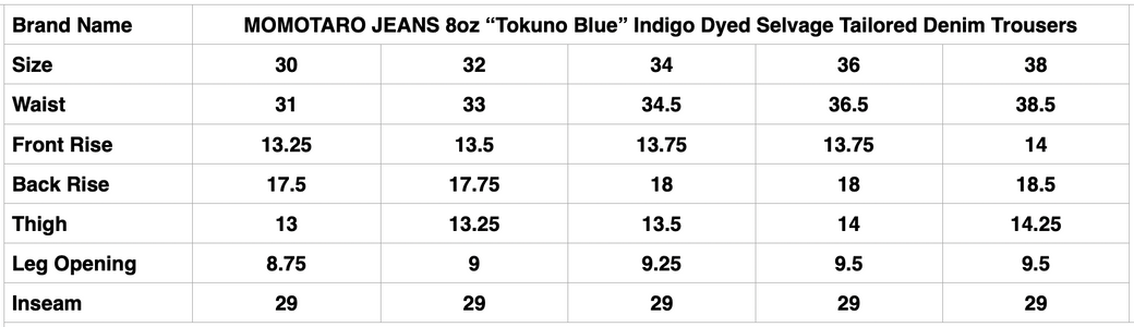 MOMOTARO JEANS 8oz “Tokuno Blue” Indigo Dyed Selvage Tailored Denim Trousers