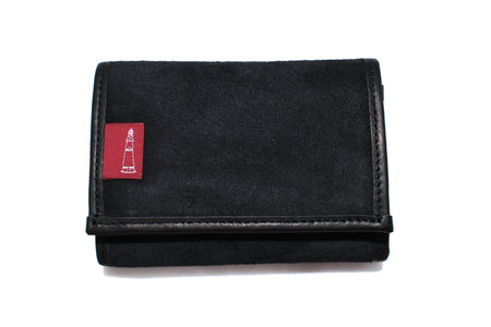 BONCOURA “BARI-BARI” Suede Cowhide Tri-fold Wallet (Black)