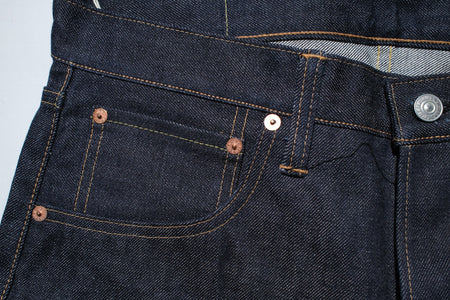 - Japanese 14.5oz yellow colour selvage ID ‘XX Type’ OG denim (specially developed by Kurabo Mill)