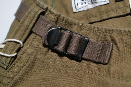 These trousers feature some amazing military-spec details inspired by the original 1940s model, with black overdyed doughnut buttons on the fly that will age to a soulful look! Freewheelers have added an additional “cigarette pack” pocket for some extra storage space. The slanted front pockets and large open pockets on the rear make these trousers highly practical. Finally, the waist adjusters on the sides ensure you can always get the perfect fit!