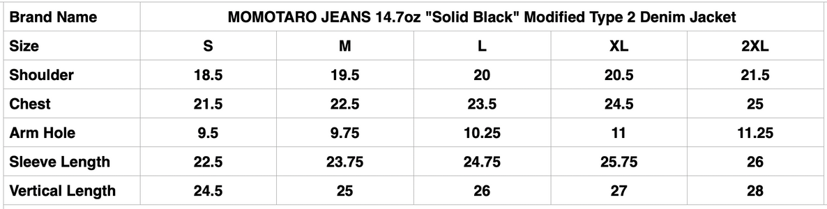 Note: This denim is sanforized, however, it may shrink 0.5" in the chest, sleeves & vertical length; 0.2" in other dimensions with wash.