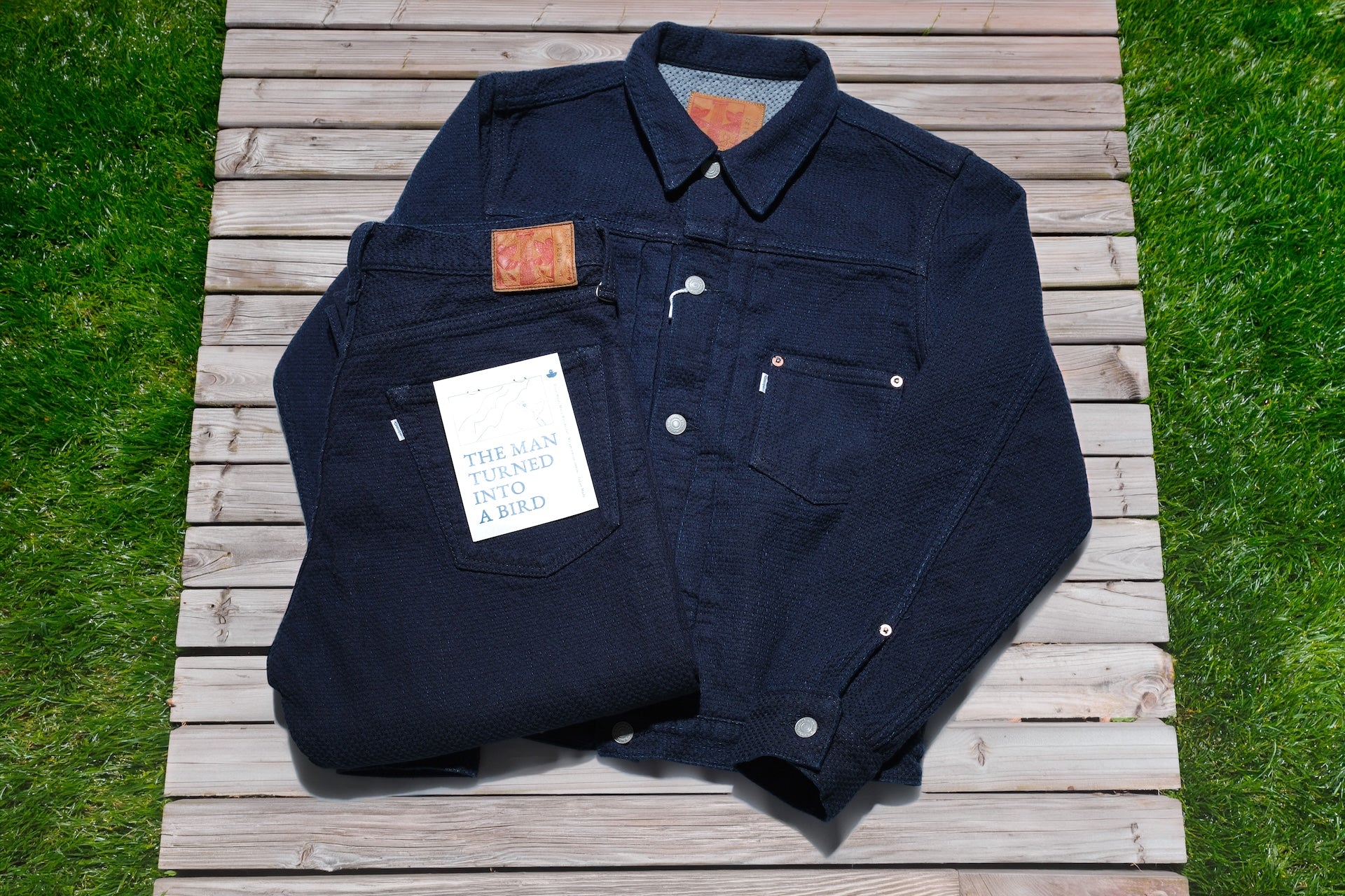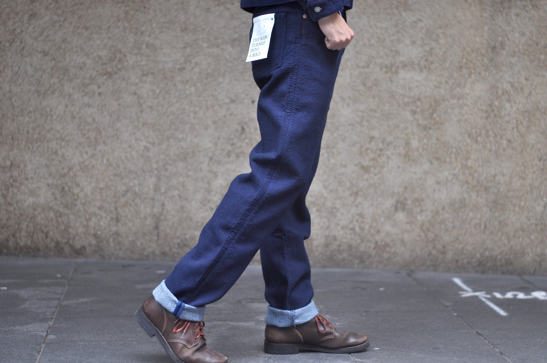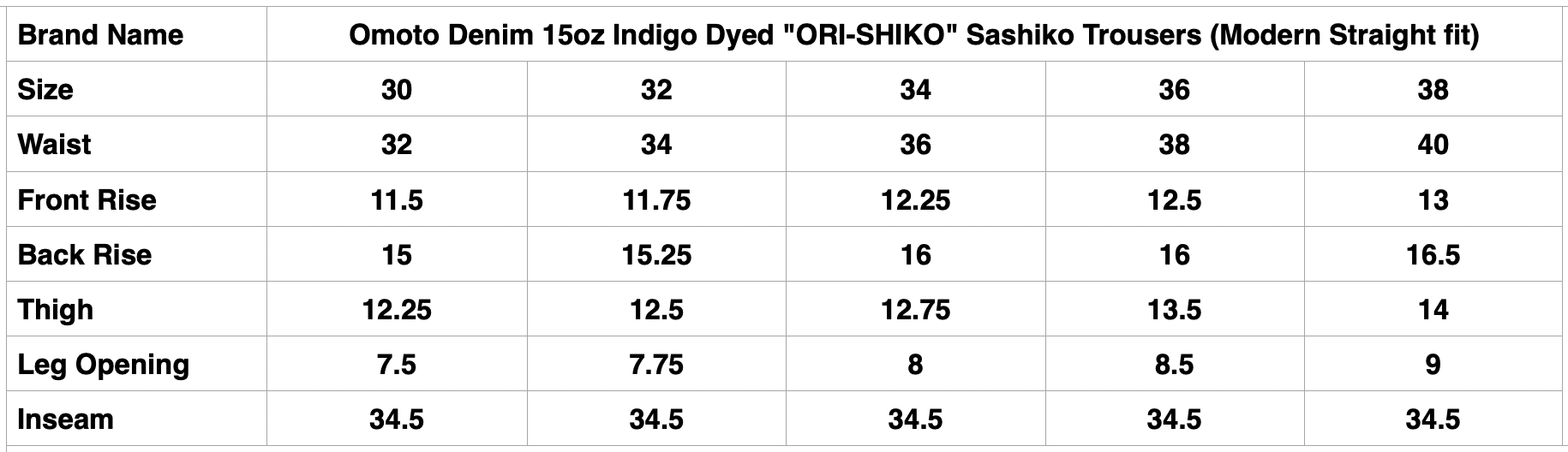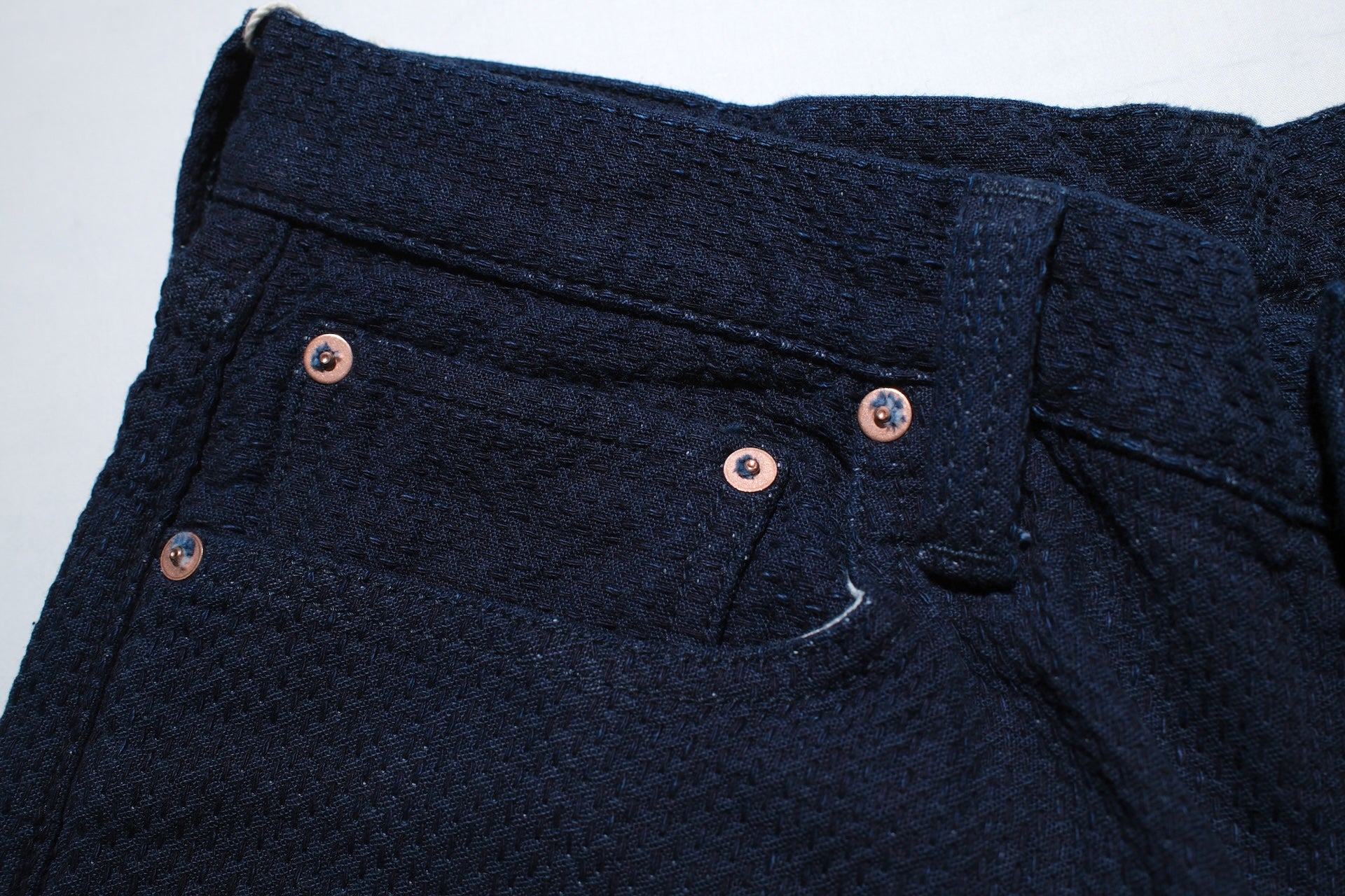 Omoto Denim 15oz Indigo Dyed "ORI-SHIKO" Sashiko Trousers (Modern Straight fit)