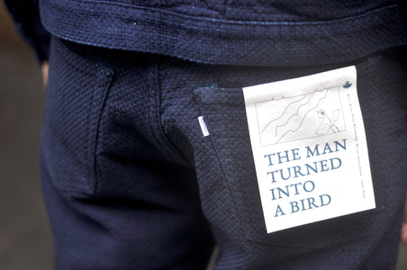 Every detail has been carefully designed: from the vegetable-tanned sheepskin leather patch and the distinctive white tab on the back pocket, to the soft yet durable herringbone twill inner pockets. Inside, a woven tag lets you record the start of your indigo journey—track the date you first wear them, along with every wash or soak. These small touches not only tell a story, but they also help you build one!