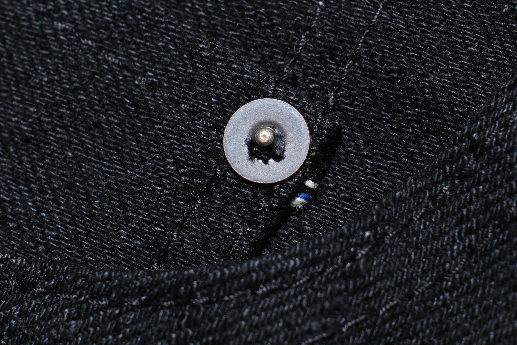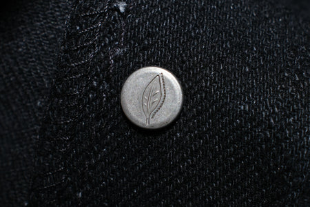 To achieve the “Ultimate Black” colourway, PBJ has dyed all the buttons and rivets in pure black as well! The high-density veg-tanned sheepskin patch will gradually soften and become shinier with a darker patina! Finally, PBJ has included their signature "indigo leaf" embroidered logo in a tonal black colour!
