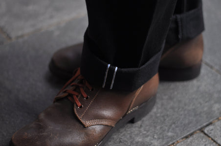This pair is constructed with PBJ’s specially developed 14oz blue selvedge I.D. XX denim. This denim has been slowly woven using vintage denim machines, resulting in a beautifully slubby texture. The yarns are thread-dyed with black sulphur dye. With wear and washing, this denim will develop a high-contrast black and white appearance.