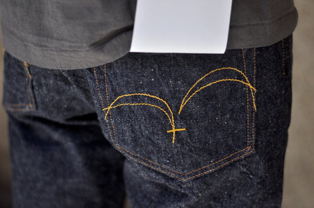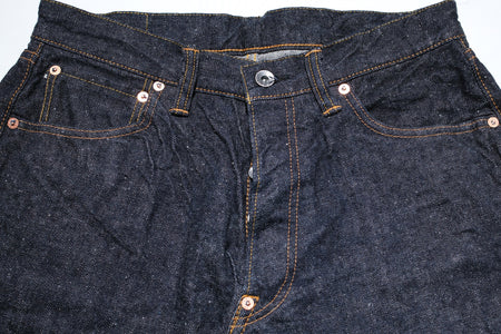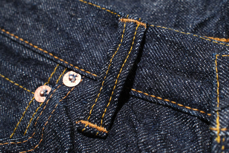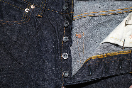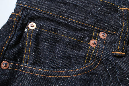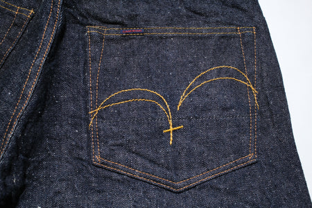 Constructed with their 15oz signature "Otokogi" nep denim, features an irregular neppy textured surface with a scattered dotted look. Made using short and crispy cotton fibres from Texas and dyed using grand indigo, this pair will age up some strong contrast with use. The texture will also become enhanced with use!