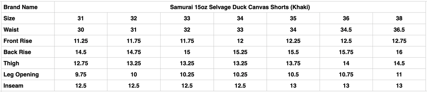 Samurai 15oz Selvage Duck Canvas Shorts (Khaki)