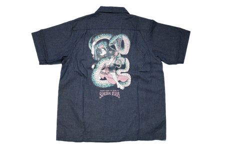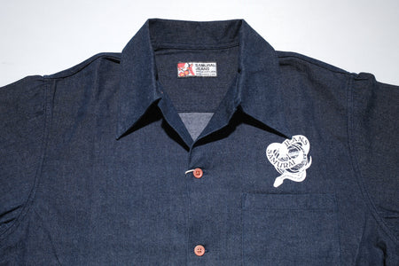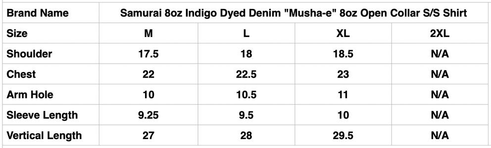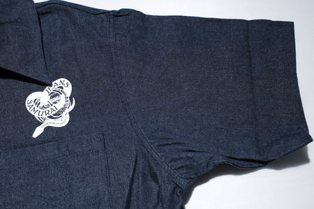 Samurai 8oz Indigo Dyed Denim "Musha-e" 8oz Open Collar S/S Shirt