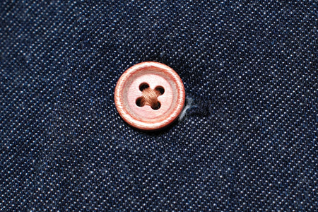 This shirt is constructed with lightweight 8oz selvage denim, specially developed by Samurai. Slowly woven using vintage denim looms, this denim has a subtly irregular texture and is extremely comfortable against the skin! Thanks to the grand indigo thread-dyeing process, this denim will fade to a high contrast sky-blue indigo look with washing and wearing!