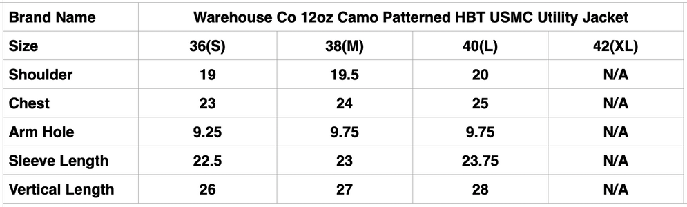 Warehouse Co. 12oz Camo Patterned HBT USMC Utility Jacket