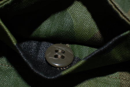 Crafted from Warehouse Co.’s specially developed 12oz selvedge herringbone twill, this fabric is slowly woven on a reconstructed vintage denim loom for unmatched texture and authenticity. The military olive color is sulphur-dyed using thread dyeing techniques, while the camo pattern is hand oil-printed by skilled artisans. With wear and washing, the camo pattern will gradually chip away, revealing a more soulful, worn-in character — and the olive base will age and fade beautifully, much like raw denim!