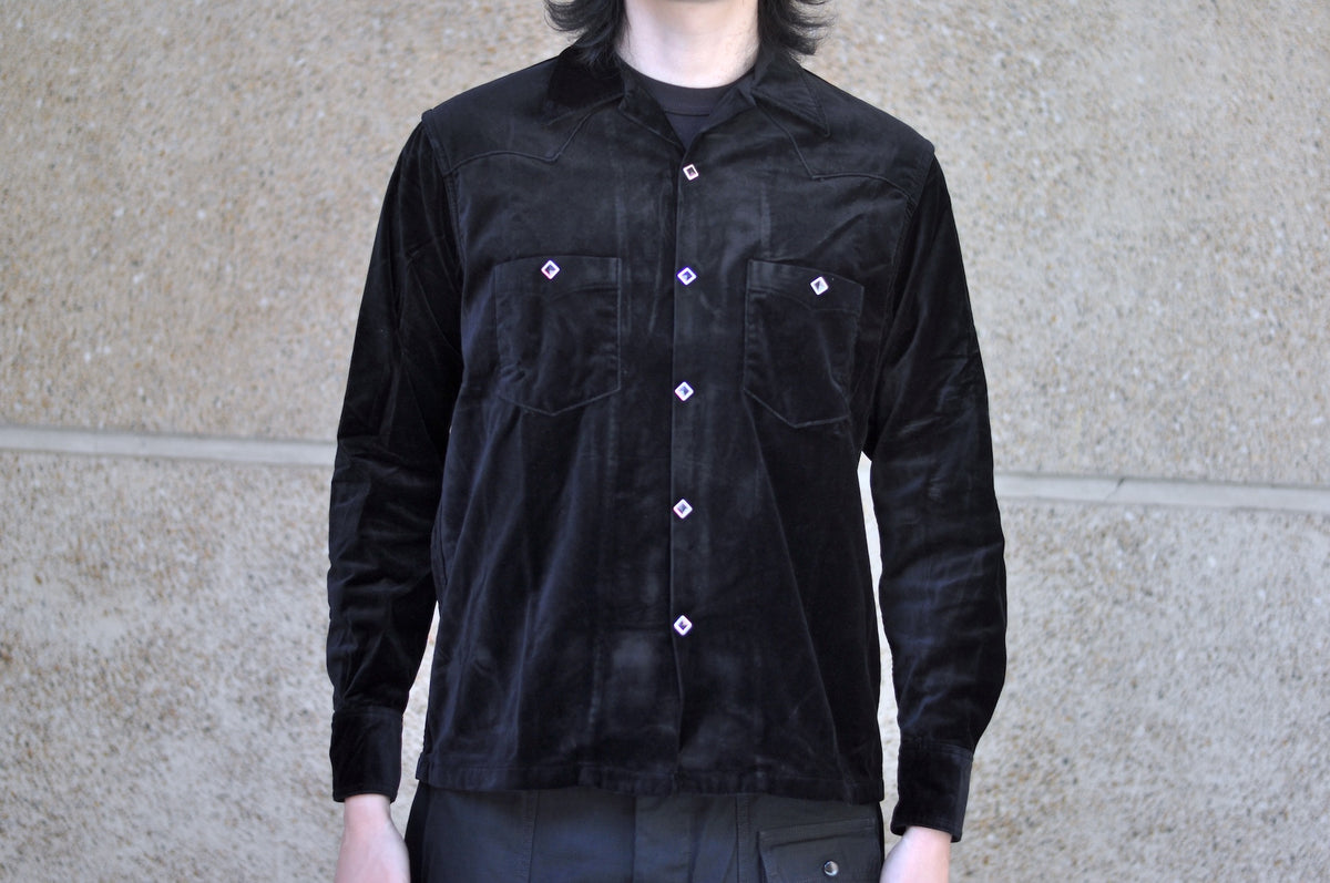 Stevenson Overall Co. Medium-weight Velveteen “UrbanLasso” Western Shirt (Solid Black)
