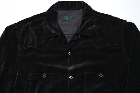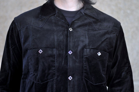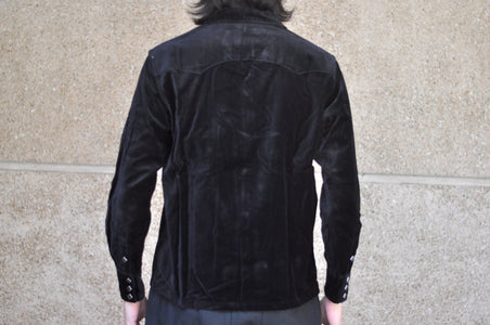 Crafted from Japanese medium-weight, high-density velveteen, the fabric offers a silky-smooth hand feel and a subtle sheen that exudes luxury and elegance — qualities rarely seen in vintage western shirts. The colour is sulphur thread-dyed, designed to age beautifully over time, developing an authentic vintage patina!