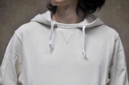 Speaking of details, this sweatshirt features vintage-spec "V" inserts on the front and back, hand warmer pockets, drawstring hood, as well as comfortable ribbing fabric on the pockets, sleeve hems and waist to keep you protected from the wind!
