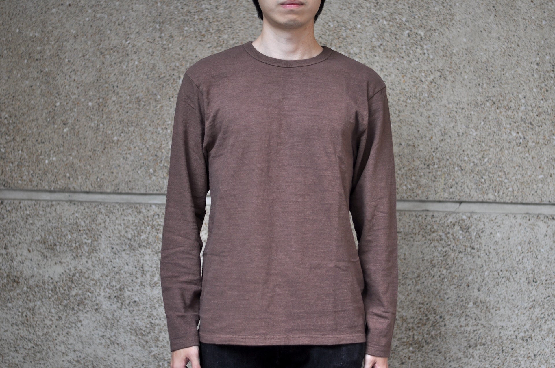 UES 9.5oz "NO.8 Slub Nep" Heavyweight L/S Plain Tee (Charcoal Brown)