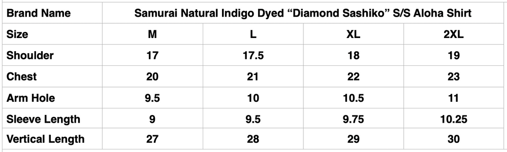 Samurai Natural Indigo Dyed “Diamond Sashiko” S/S Aloha Shirt