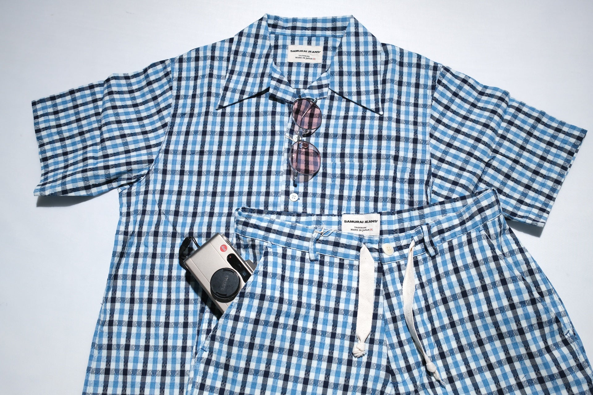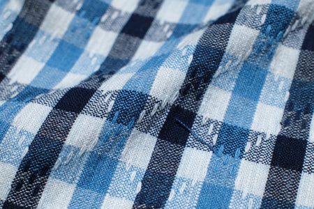 This aloha shirt is made from Samurai’s specially developed lightweight “Diamond Sashiko” jacquard fabric, meticulously woven on a vintage jacquard loom from one of Japan’s oldest Sashiko knitting workshops. The intricate texture is a testament to traditional craftsmanship, blending heritage technique with modern wearability. The cotton threads are hand-dyed in varying tones of natural indigo by master Japanese artisans. With time, the natural indigo will age slowly and gracefully to a more soulful look!