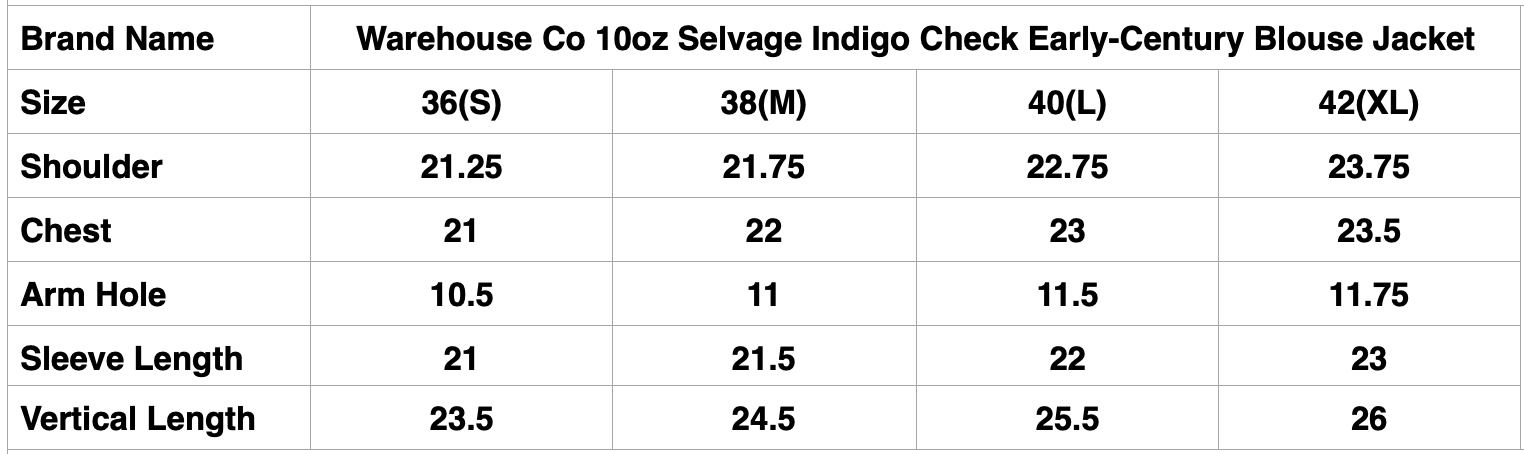 Warehouse Co. 10oz Selvage Indigo Check Early-Century Blouse Jacket