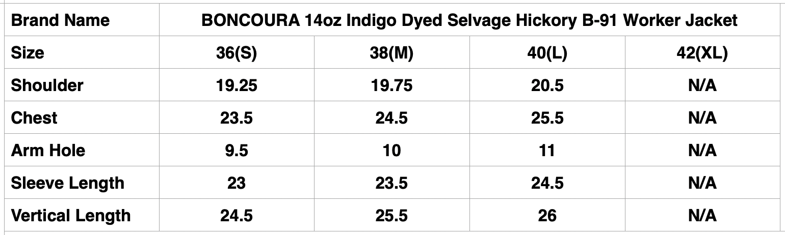 BONCOURA 14oz Indigo Dyed Selvage Hickory B-91 Worker Jacket