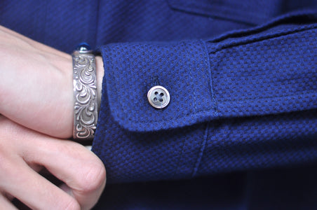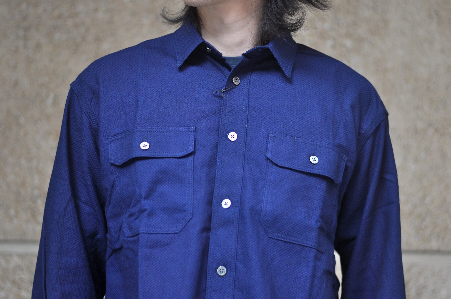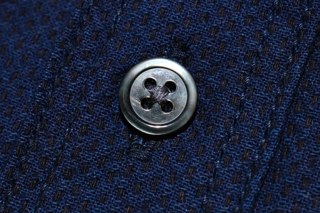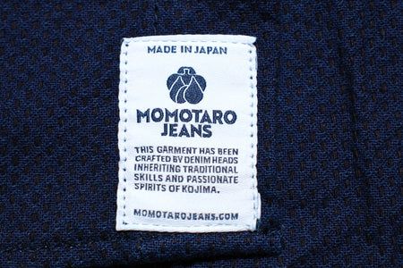This CPO shirt is constructed with Momotaro's specially developed 8oz classic sashiko knitting fabric. The threads are dyed with Grand Indigo and Genuine Indigo, two different tones. With wear and wash, this 8oz classic sashiko knitting fabric will age to a high-contrast look with different hues of indigo coming up little by little!