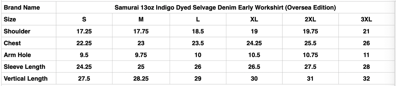 Samurai 13oz Indigo Dyed Selvage Denim Early Workshirt (Oversea Edition)