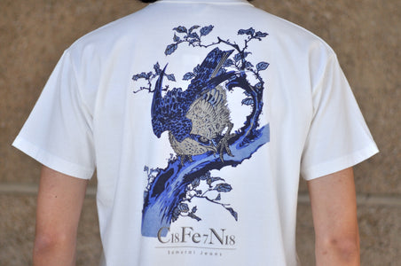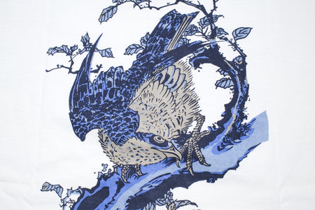 This graphic tee draws inspiration from one of the most iconic styles of traditional Japanese woodblock printing: Aizuri-e (also known as “Indigo Print Pictures”). Characterized by the exclusive use of indigo ink, this art form creates striking visuals with minimal color — and maximum depth. Featured here is one of the most legendary motifs: the White Falcon — a bold, timeless symbol brought to life in rich indigo tones!