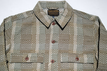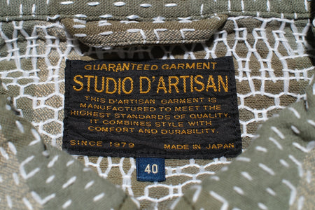 Studio D'Artisan 12oz "Noragi" Sashiko Officer Workshirt (Olive)