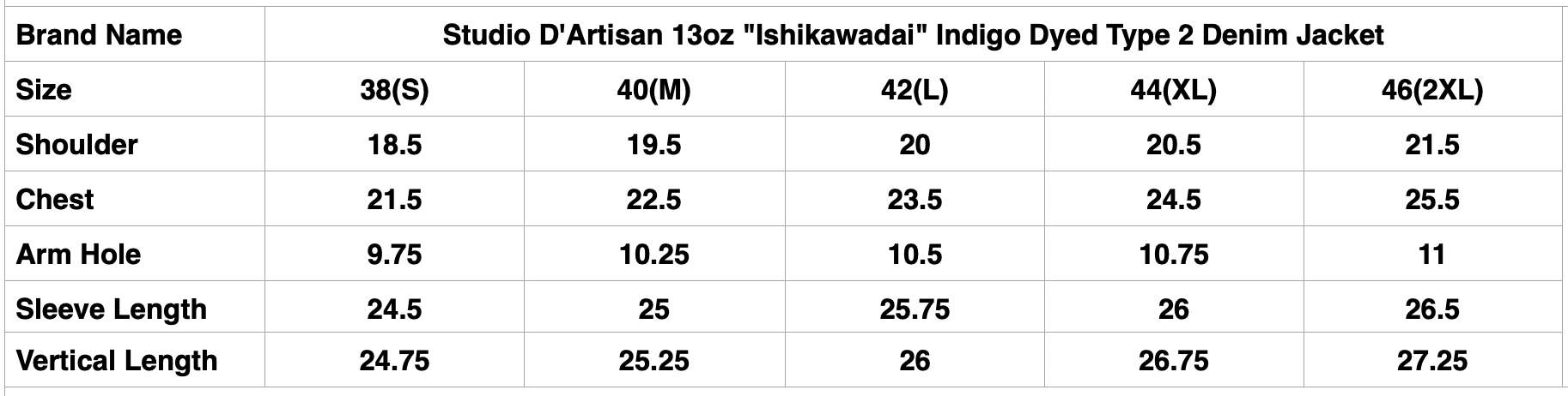 Studio D'Artisan 13oz "Ishikawadai" Indigo Dyed Type 2 Denim Jacket